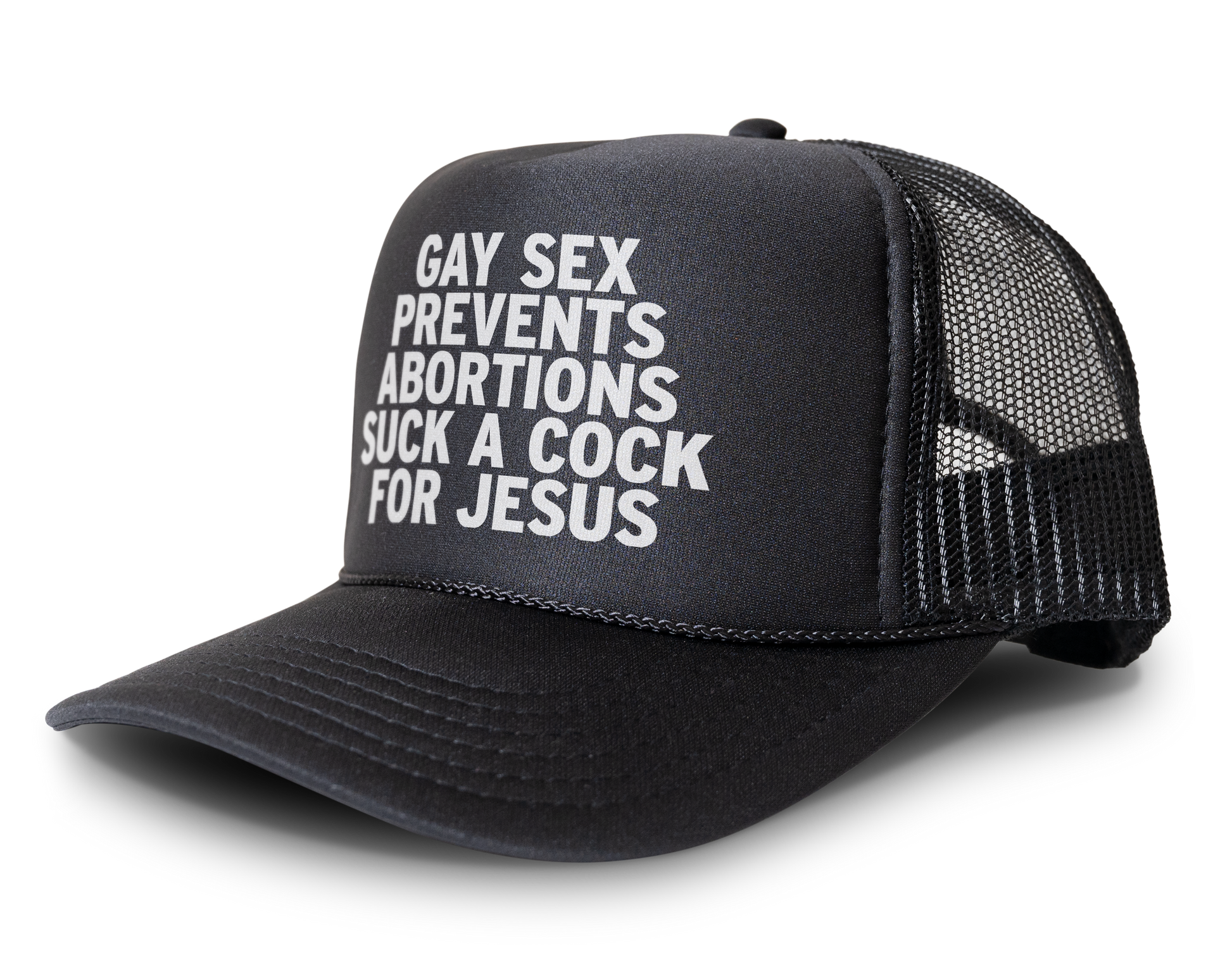 Gay Sex Prevents Abortions Suck a Cock For Jesus Funny Gay Party Snapback Mesh Trucker Hat