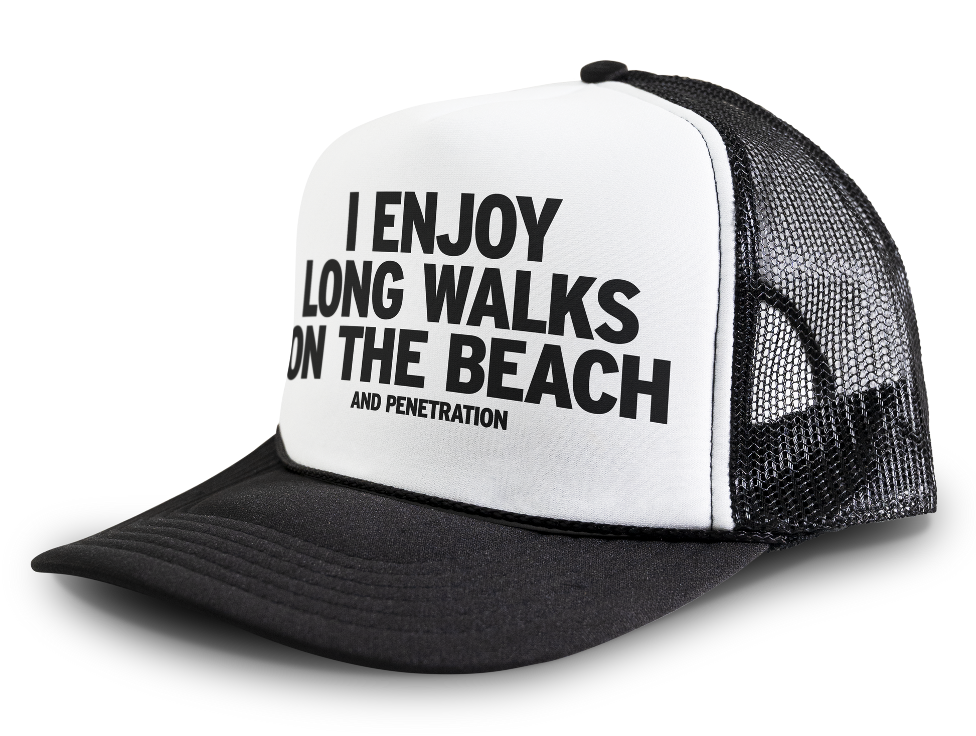 I Enjoy Long Walks on the Beach and Penetration Funny Party Snapback Mesh Trucker Hat